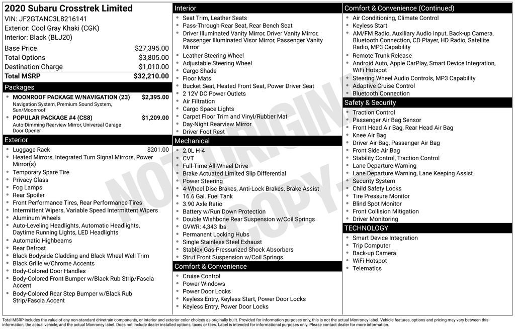 - Vehicle Name: Subaru Crosstrek