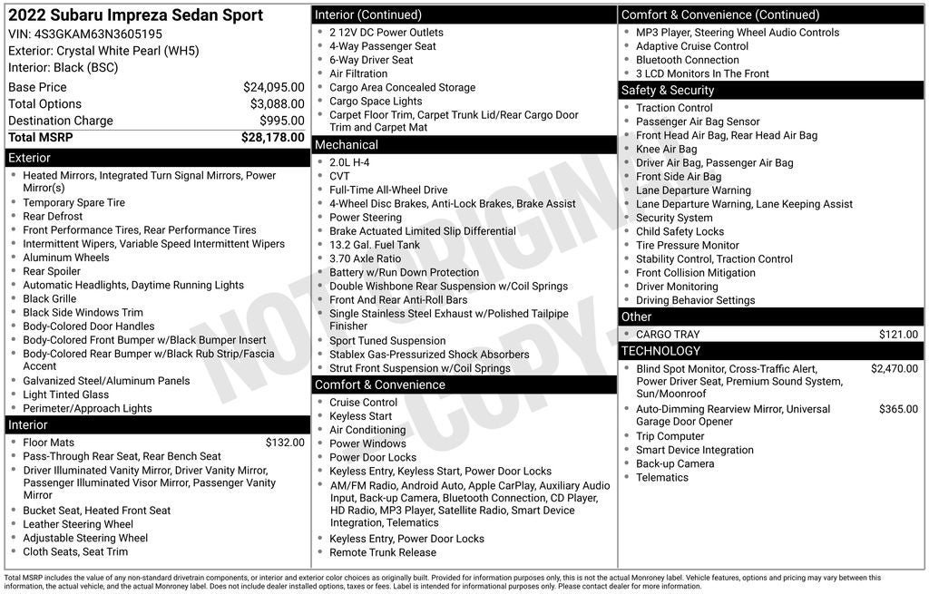 2022 Subaru Impreza Sport | 4S3GKAM63N3605195