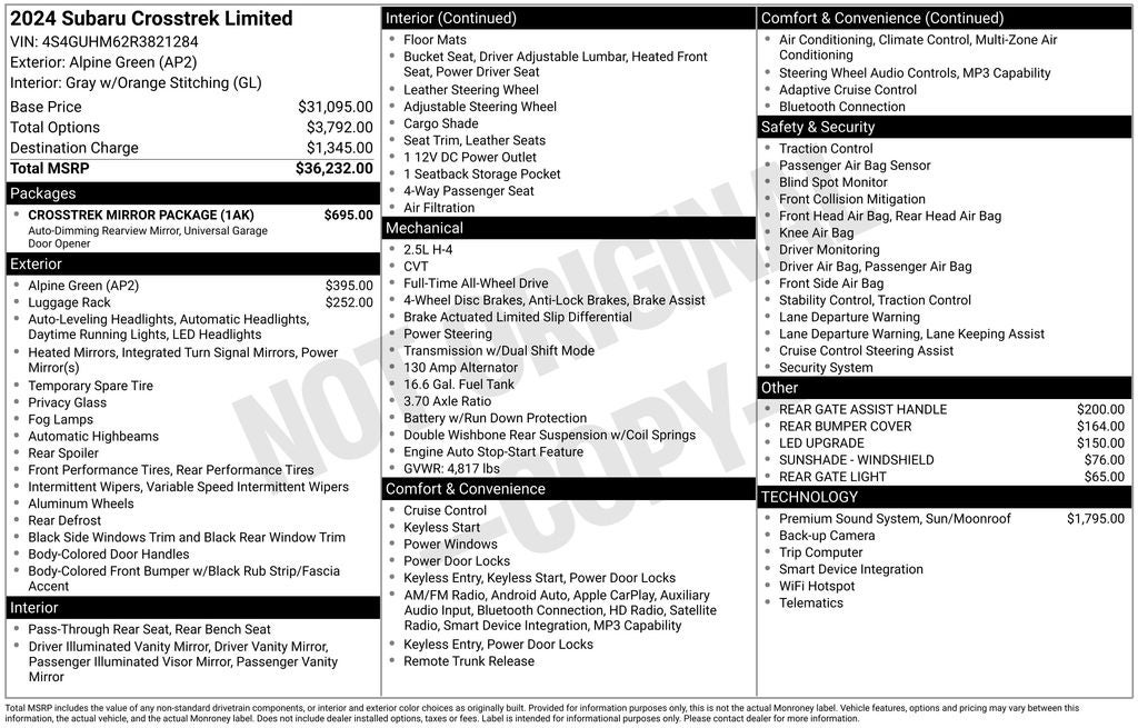- Vehicle Name: Subaru Crosstrek