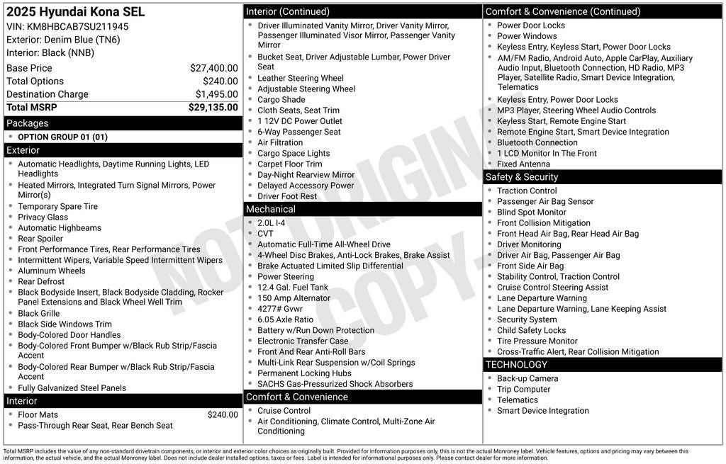- Vehicle Name: Hyundai Kona